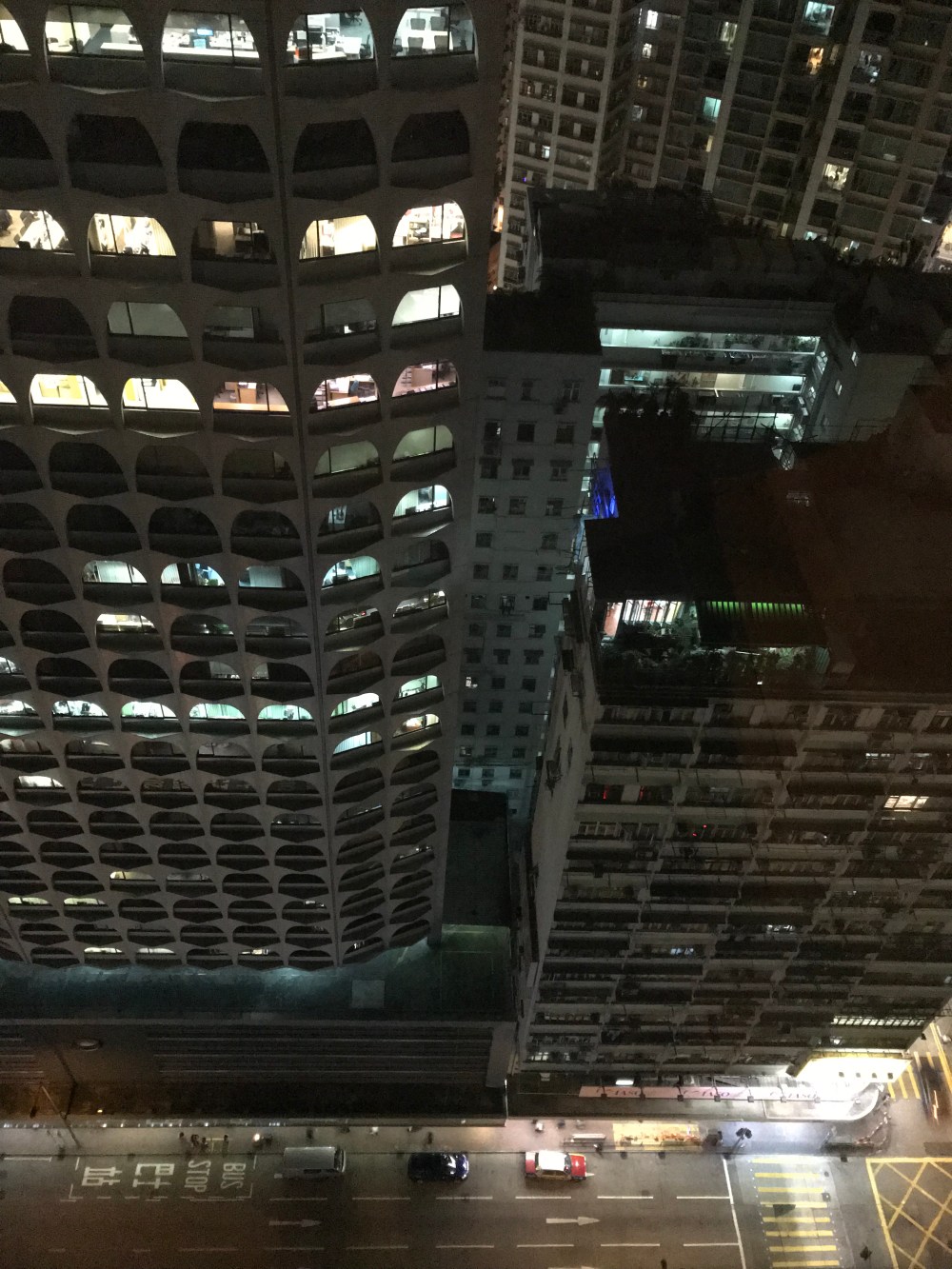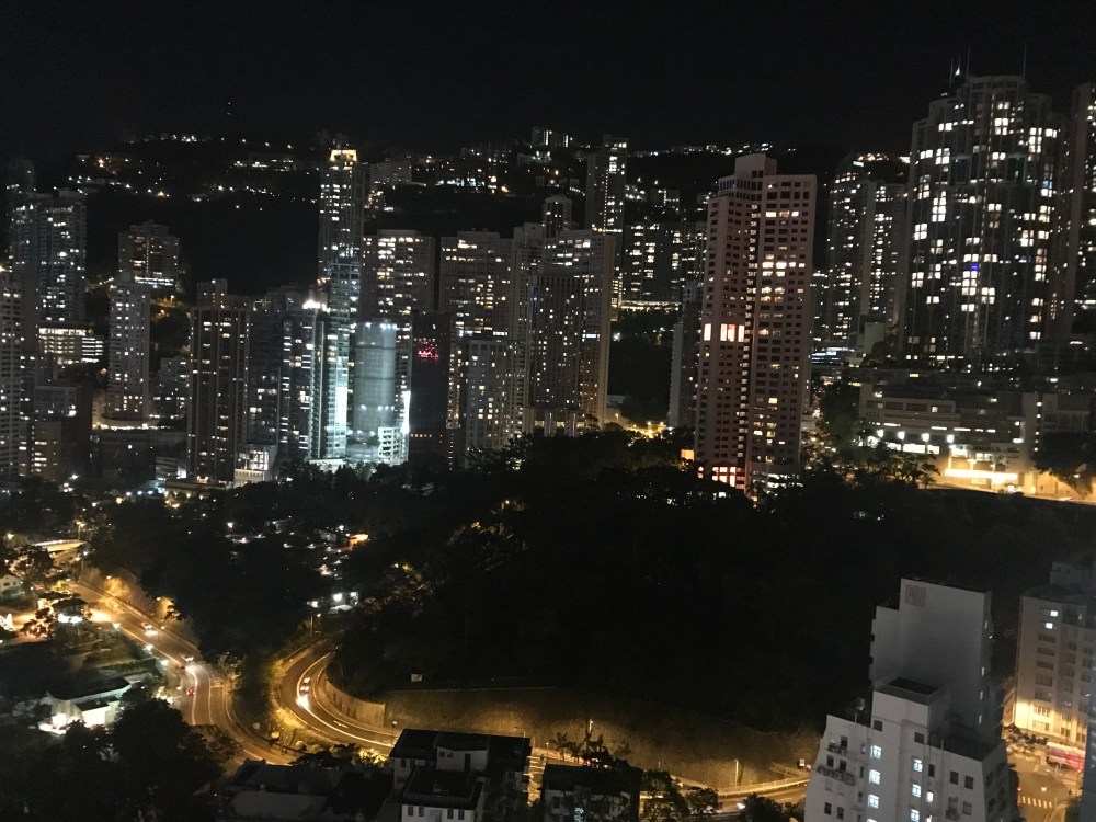Once I’d checked into my hotel room (which is on the 23rd floor and has amazing views!), I met an old university friend, Jess, for dinner, as she now lives and works in Hong Kong. She’s very busy with work at the moment so we grabbed a quick dinner near her office. It’s the norm here for people to queue up and then share a table. At her recommendation, I ordered a bowl of noodles with pork, and we shared a bean curd side dish. I’m aware that my chopstick technique is horrible (the sticks aren’t supposed to cross over) but it does work! It was lovely to catch up with Jess after not seeing each other for a couple of years. When we parted ways she pointed me in the direction of a sky bar with an amazing view of the city, and that’s where the night continued!