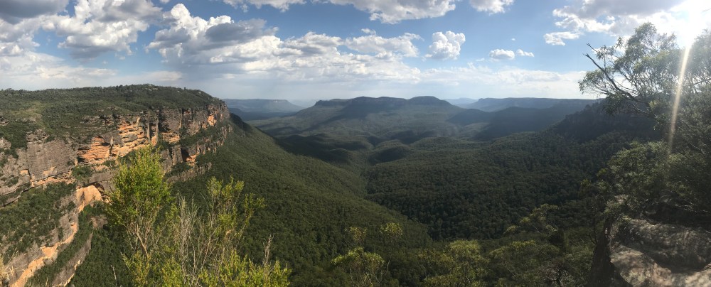 My only real criticism of the bus system is that it stops running around 5pm, which seems a shame when it doesn’t get dark for another three hours. This meant that the end of my visit was a bit rushed. I had just enough time to stop at Gordon’s Lookout, which I had to myself and gave an amazing view of Gordon’s Falls. I wanted to visit the Pool of Siloam too but I’d run out of time and energy by this point. I caught the bus back to Leura, the next station along from Katoomba, just as the weather was breaking. I found a nice Belgian restaurant for an early dinner and watched from the balcony as the rain poured down and heavy mists rolled in. I learnt later that Sydney had experienced similar weather and the temperature had dropped nearly 20 degrees within half an hour! By the time I got back to the city around 9pm, I was getting chilly, which seems ridiculous considering the temperatures earlier in the day. The Blue Mountains were definitely worth visiting and I wish I’d had time to stay overnight there and walk a few more of the trails.
